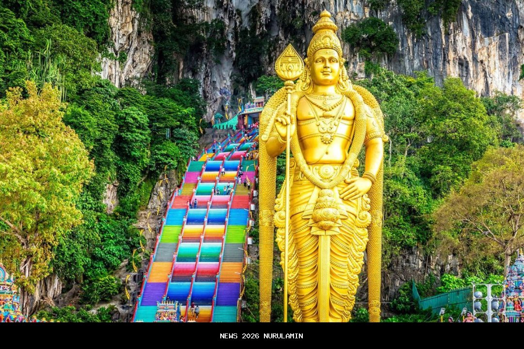 Batu Caves adalah kompleks gua kapur dengan patung raksasa Dewa Murugan yang menjulang di pintu masuk. Tempat ini menjadi pusat perayaan Thaipusam, salah satu festival Hindu terbesar di Asia Tenggara. Untuk mencapai kuil utama di dalam gua, Anda harus menaiki lebih dari 270 anak tangga warna-warni.