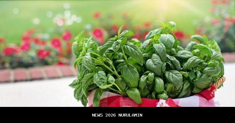 Basil membutuhkan sinar matahari cukup dan tanah yang lembap. Pastikan untuk memotong daun secara rutin agar tanaman tetap rimbun.