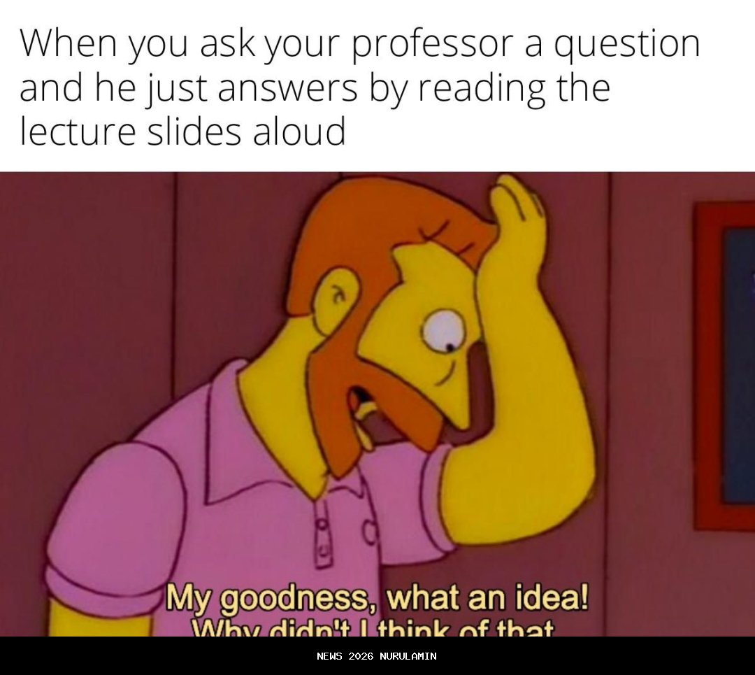 Beberapa topik yang dibahas dalam kumpulan meme ini mencakup pengalaman pertama kali masuk kuliah, kesulitan dalam menghadapi dosen yang sibuk, serta jumlah tugas yang terasa membebani. Bagi yang masih sekolah, apakah kamu sudah siap menghadapi tantangan-tantangan seperti ini? Berikut beberapa contoh meme yang mungkin akan membuatmu tertawa sekaligus merasa terwakili.