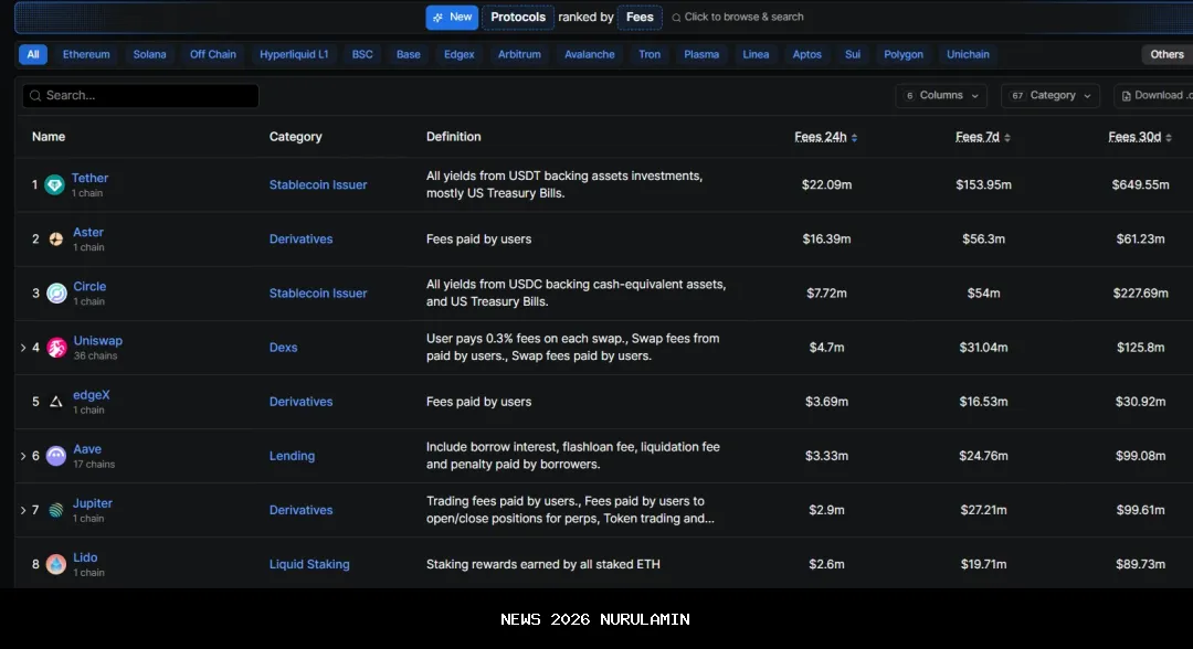 Sejak 24 September, Aster telah mengungguli perusahaan stablecoin Circle dalam jumlah pendapatan protokol yang dihasilkannya, memecah monopoli baru antara penerbit USDC dan Tether.