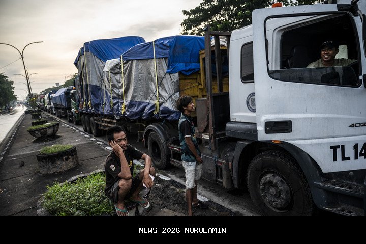 Saat Warga dan Aparat Bantu Dorong Truk Mogok