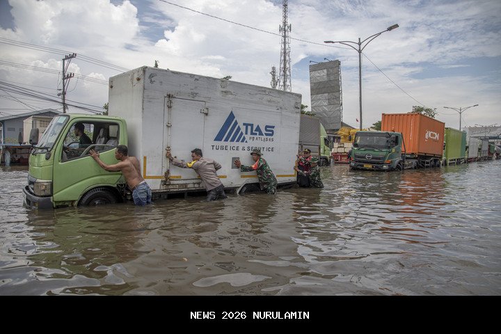 Banjir merendam kawasan Jalan Kaligawe Raya, Semarang, yang terhubung dengan jalur Pantura menuju Demak, Jawa Tengah. Genangan air setinggi 20 hingga 70 cm membuat jalur utama itu lumpuh dan hanya bisa dilalui kendaraan besar seperti truk trailer. Polisi pun mengimbau masyarakat untuk menghindari rute tersebut dan beralih melalui jalur Mranggen.