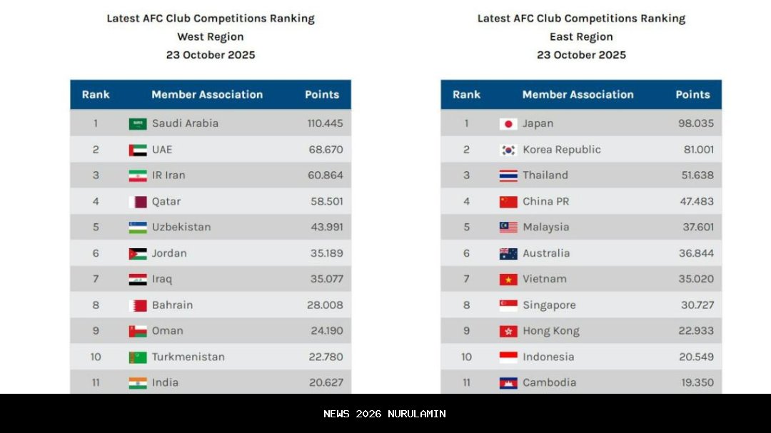 Update Ranking Grup Timur AFC, 23 Oktober 2025