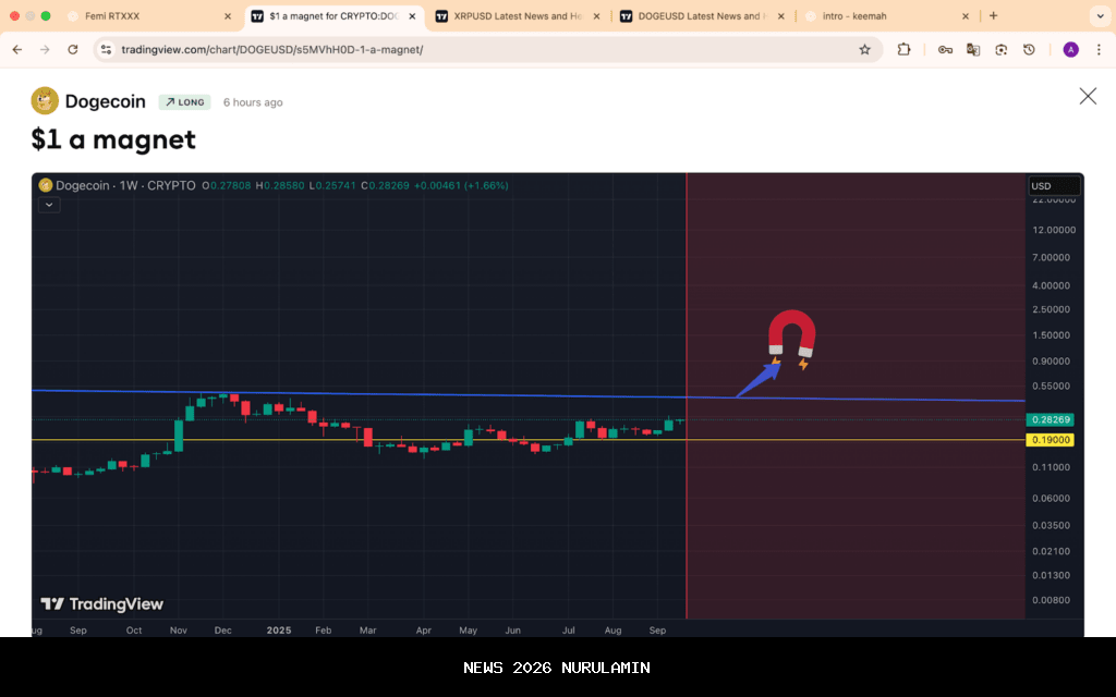 Dogecoin saat ini dihargai $0,28269, karena harga DOGE telah mengalami pemulihan yang kuat, naik dari $0,25 ke $0,28 dalam beberapa hari saja.