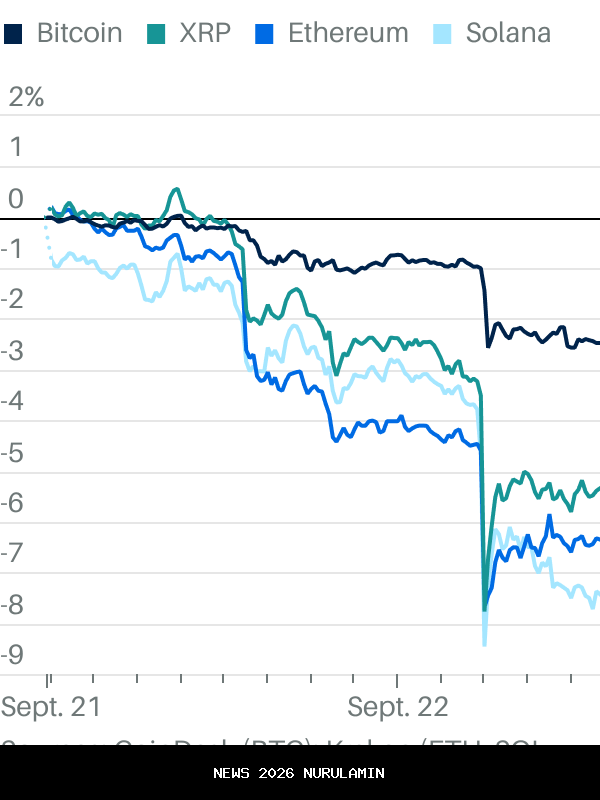 Kripto lainnya juga sedang turun. Ethereum dan Solana masing-masing turun 6,7%, sedangkan XRP turun 3,6% dalam 24 jam terakhir, menurut data dari bursa kripto Kraken.