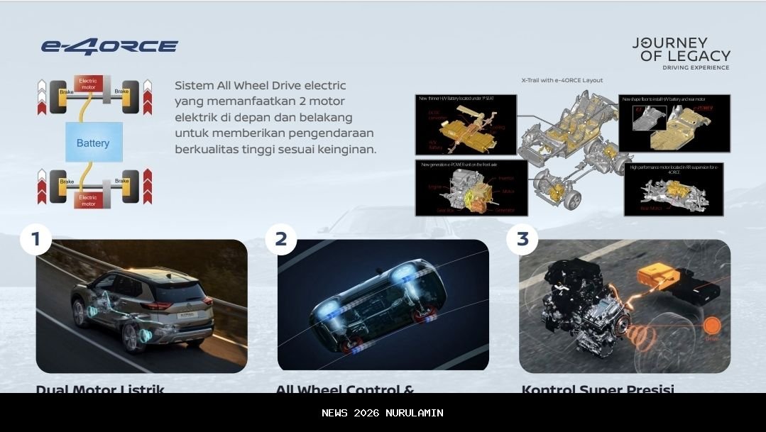 Nissan X-Trail e-POWER kini resmi hadir di Indonesia, membawa inovasi teknologi yang menonjolkan keunggulan utama yaitu e-4ORCE. Teknologi ini dirancang untuk memberikan pengalaman berkendara yang stabil, presisi, dan responsif dalam berbagai kondisi jalan.