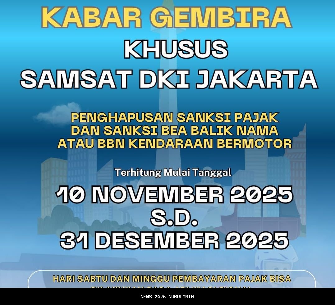 DKI Jakarta kembali menggelar program penghapusan sanksi pajak kendaraan untuk memberikan kesempatan masyarakat membayar PKB tanpa dikenakan denda mulai 10 November 2025. Program ini berlaku hingga 31 Desember 2025 dan mencakup: - Penghapusan sanksi pajak kendaraan bermotor - Penghapusan sanksi Bea Balik Nama Kendaraan Bermotor (BBNKB) - Penghapusan Bea Balik Nama (BBN) Kendaraan Bermotor