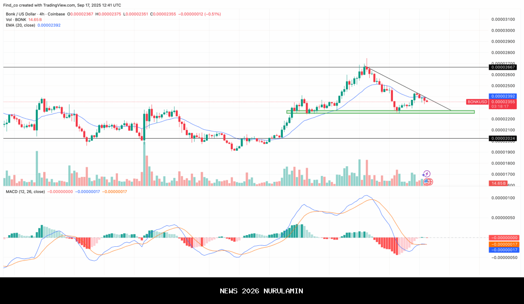 Chart 4 Jam BONK/USD | Kredit:TradingView Di sisi lain, BONK sedang menguji EMA 20 hari-nya. Penutupan yang berhasil di atas ambang batas ini bisa membuka jalan untuk pemulihan lebih lanjut, dengan target kenaikan berikutnya mendekati $0,000030.