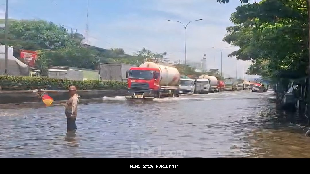 Banjir Masih Menggenangi Jalan Pantura Kaligawe, Semarang