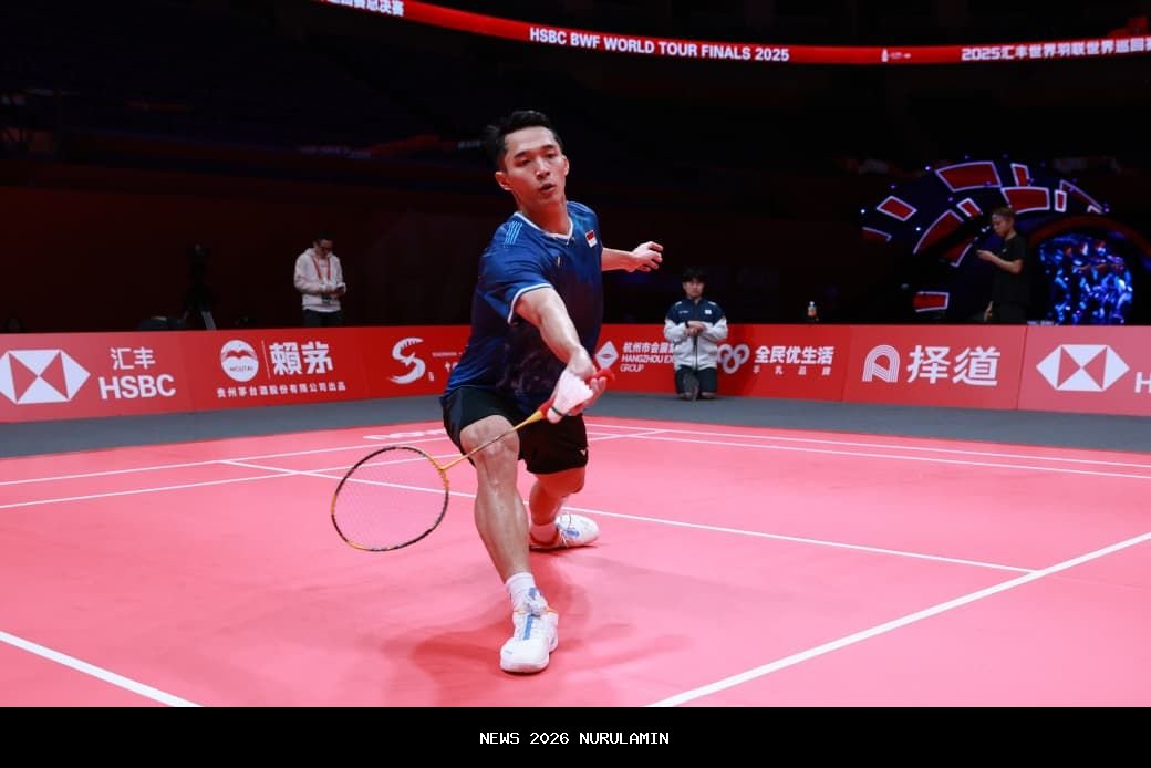 Jonatan Christie, pebulu tangkis tunggal putra Indonesia, harus menerima kekalahan dalam laga perdana BWF World Tour Finals 2025. Pertandingan ini berlangsung di Hangzhou Olympic Sports Centre, China, pada Selasa (17/12/2025), melawan Kunlavut Vitidsarn dari Thailand. Jonatan kalah dua gim langsung tanpa kesempatan membalikkan situasi.