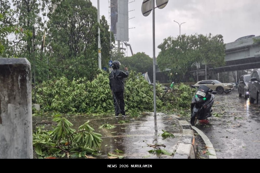 JAKARTA - Sejumlah pohon tumbang di wilayah Lebak Bulus Jakarta Selatan hari ini, Minggu 26 Oktober 2026.