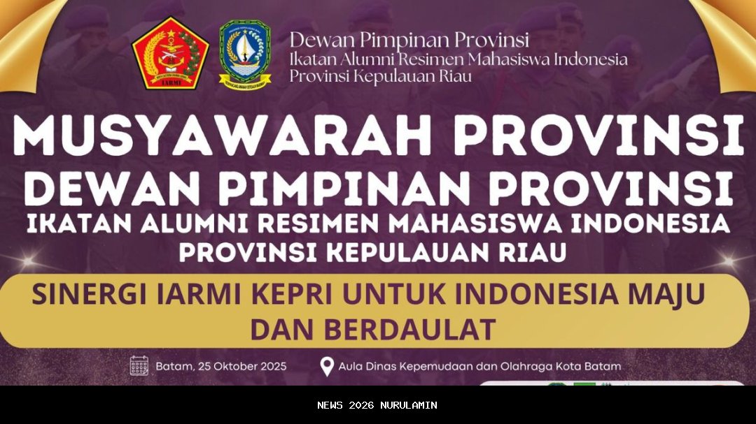 Dewan Pimpinan Provinsi (DPP) Ikatan Alumni Resimen Mahasiswa Indonesia (IARMI) Provinsi Kepulauan Riau (Kepri) mengadakan Musyawarah Provinsi (Musprov) di Kantor Pemuda dan Olahraga (Kanpora) Kota Batam, pada Sabtu (25/10/2025). Acara ini menjadi momen penting dalam menentukan arah kebijakan dan masa depan organisasi. Musprov dilaksanakan setiap empat tahun sekali sebagai forum pengambilan keputusan tertinggi.