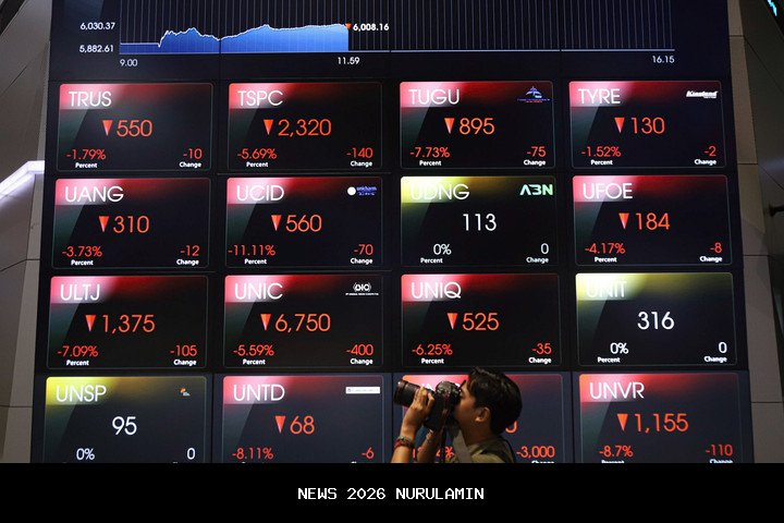 Indeks Harga Saham Gabungan (IHSG) ditutup di zona merah pada sesi pertama perdagangan hari Kamis (26/2). Berdasarkan data yang dirangkum, indeks komposit mengalami penurunan sebesar 67,04 poin atau 0,80% menjadi berada di level 8.255,18.