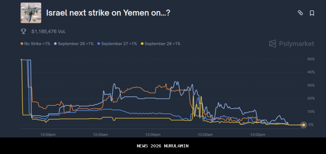 Para pedagang di pasar prediksi berbasis kripto telah melakukan perdagangan senilai lebih dari 1 juta dolar di pasar ini, dan menurut mereka, terdapat kemungkinan sebesar 99% bahwa Israel akan menyerang Yaman pada 25 September.