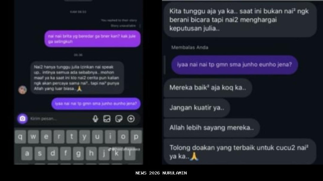 Sebelum pernyataan Daehoon mencuat, ibunda Jule, Diana Liem, lebih dulu memberi klarifikasi mengejutkan lewat pesan pribadi di Instagram. Kepada netizen yang bertanya, Diana mengatakan dirinya masih menunggu izin dari Jule untuk bicara. Ia menegaskan tahu apa yang sebenarnya terjadi di balik isu ini.
