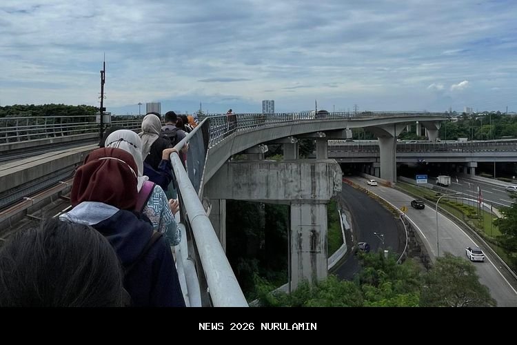 – Gangguan operasional LRT Jabodebek pada hari Sabtu (25/10/2025) pagi menyebabkan seluruh perjalanan di lintasan terhenti sementara. Akibatnya, sejumlah penumpang harus berjalan kaki di jalur layang untuk dievakuasi menuju stasiun terdekat.