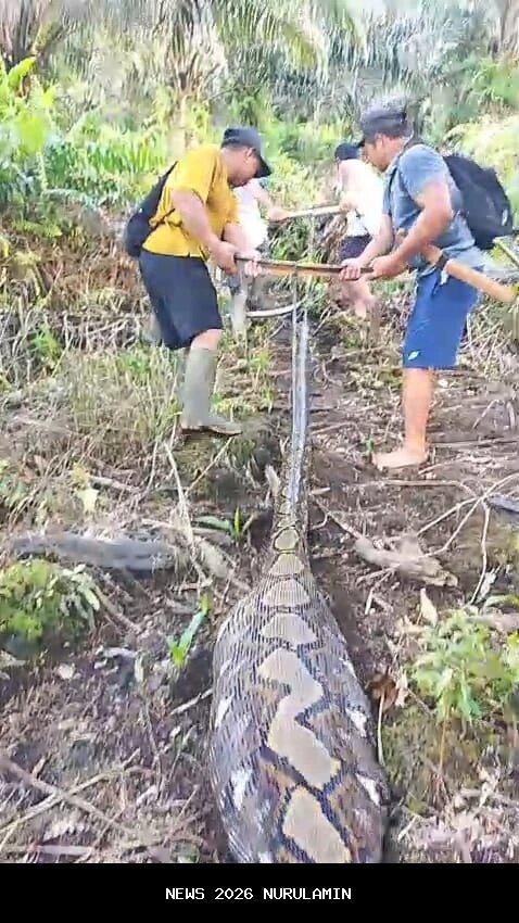 Dalam video yang diterima tim jurnalis, terlihat sejumlah warga menarik ular piton itu dengan menggunakan tali. Perut ular pun terlihat membesar setelah memangsa sapi. Hewan melata itu ditemukan di area perkebunan sawit. Aksi warga menarik ular tersebut menunjukkan kepedulian mereka terhadap keamanan lingkungan sekitar.