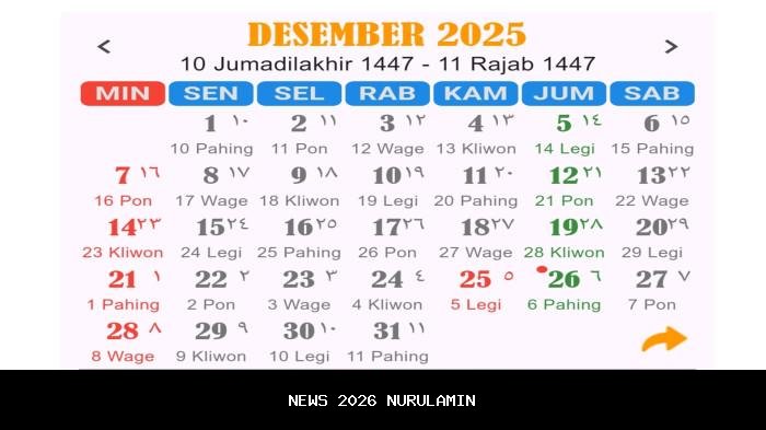 Berikut konversi tanggal dan pasaran Jawa untuk bulan Desember 2025: