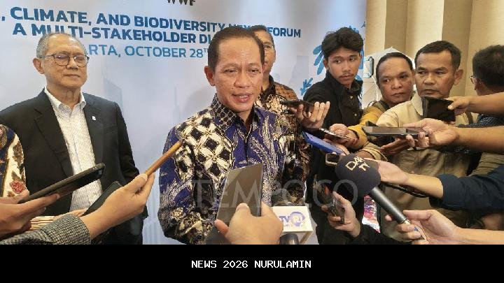 Menteri Lingkungan Hidup Hanif Faisol Nurofiq saat ditemui di The Ritz-Carlton Hotel, Jakarta, 28 Oktober 2025. Tempo/M. Faiz Zaki