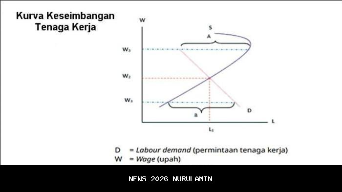 - Permintaan tenaga kerja (D): Hubungannya negatif dengan upah. Semakin tinggi upah, semakin sedikit tenaga kerja yang diminta perusahaan karena biaya tenaga kerja mahal. Sebaliknya, semakin rendah upah, semakin banyak tenaga kerja yang diminta.