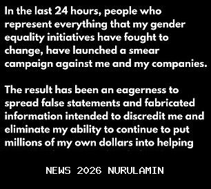 Dalam 24 jam terakhir, orang-orang yang mewakili segala sesuatu yang telah inisiatif kesetaraan gender saya perjuangkan untuk ubah, telah memulai kampanye fitnah terhadap saya dan perusahaan-perusahaan saya.