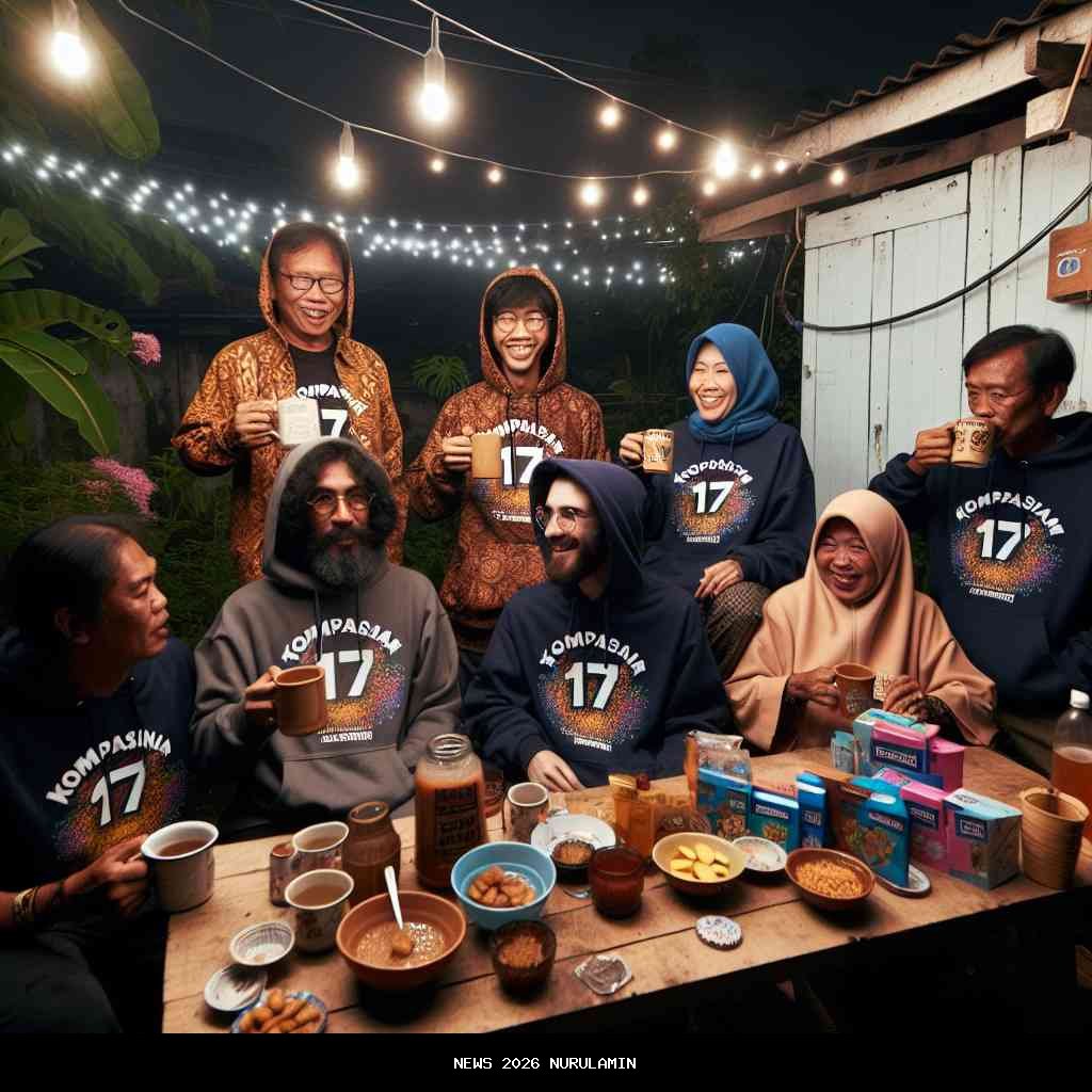 "aku pakai hoodie Sweet 17 ini sejak subuh, biar kelihatan setia," kata Mas Dodi sambil memperlihatkan hoodie biru tua dengan logo angka '17' yang menyala di bawah sinar UV. "Padahal, ini baru dicuci tadi siang karena kemarin hunting foto di Monas, kena debu plus keringat plus kecipratan es teh tumpah."