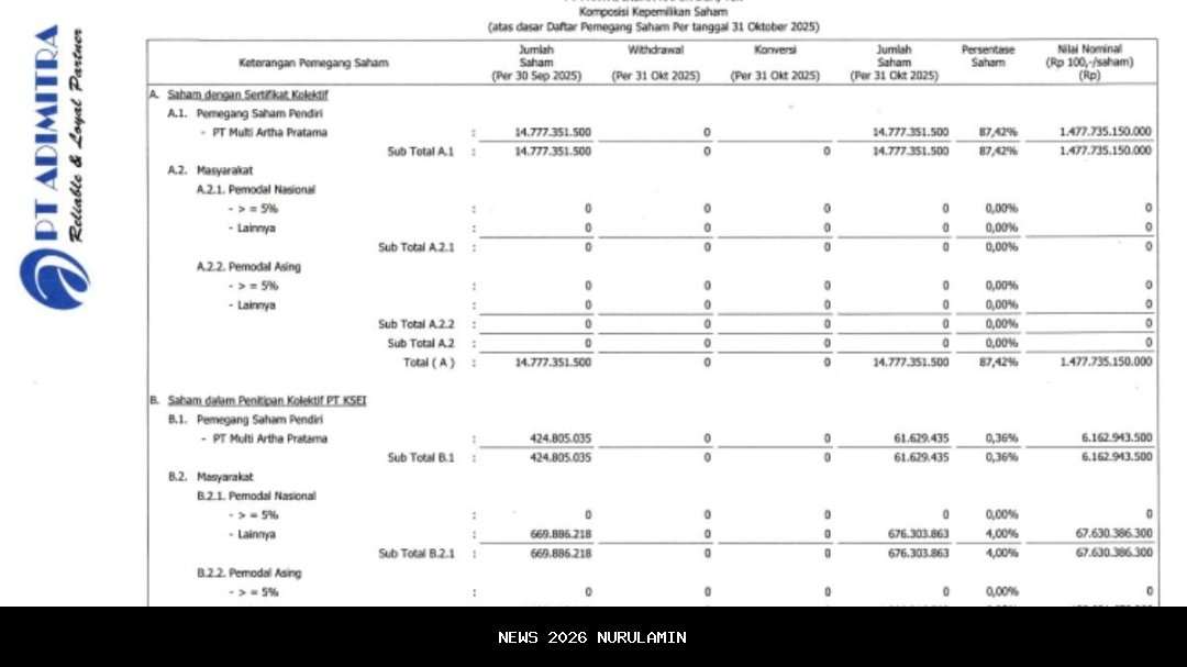 PT Pantai Indah Kapuk Dua Tbk (PANI) telah merilis data terbaru mengenai Laporan Bulanan Registrasi Pemegang Efek yang berakhir pada 31 Oktober 2025. Informasi tersebut memberikan gambaran tentang perubahan kepemilikan saham di emiten properti ini, khususnya terkait aksi divestasi oleh pemegang saham pengendali dan pergerakan investor ritel.