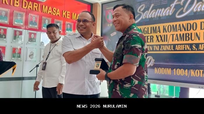 Pemkab Kotabaru turut menyambut kunjungan kerja Panglima Komando Daerah Militer (Pangdam) XXII/Tambun Bungai, Mayjen TNI Zainul Arifin bersama rombongan di Makodim 1004/Kotabaru, Rabu (5/11/2025). Kehadiran Pangdam disambut hangat oleh jajaran Forum Koordinasi Pimpinan Daerah (Forkopimda) Kotabaru.
