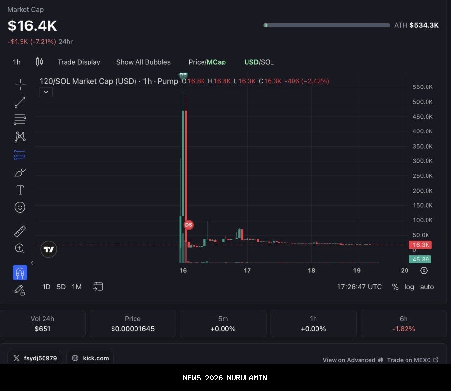 Sebelum runtuh, data di Pump.fun menunjukkan kapitalisasi pasar tertinggi sepanjang masa sekitar $534.300, tetapi ketika penggelapan diberitakan, pengembang telah mengosongkan volume perdagangan dan akun X menghilang.