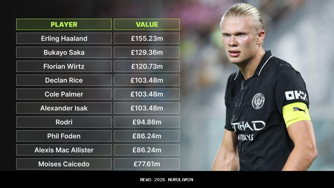 Bintang dari Arsenal, Liverpool, dan Manchester City termasuk dalam 10 yang paling bernilai.Liga Premierpemain di musim 2025-26.