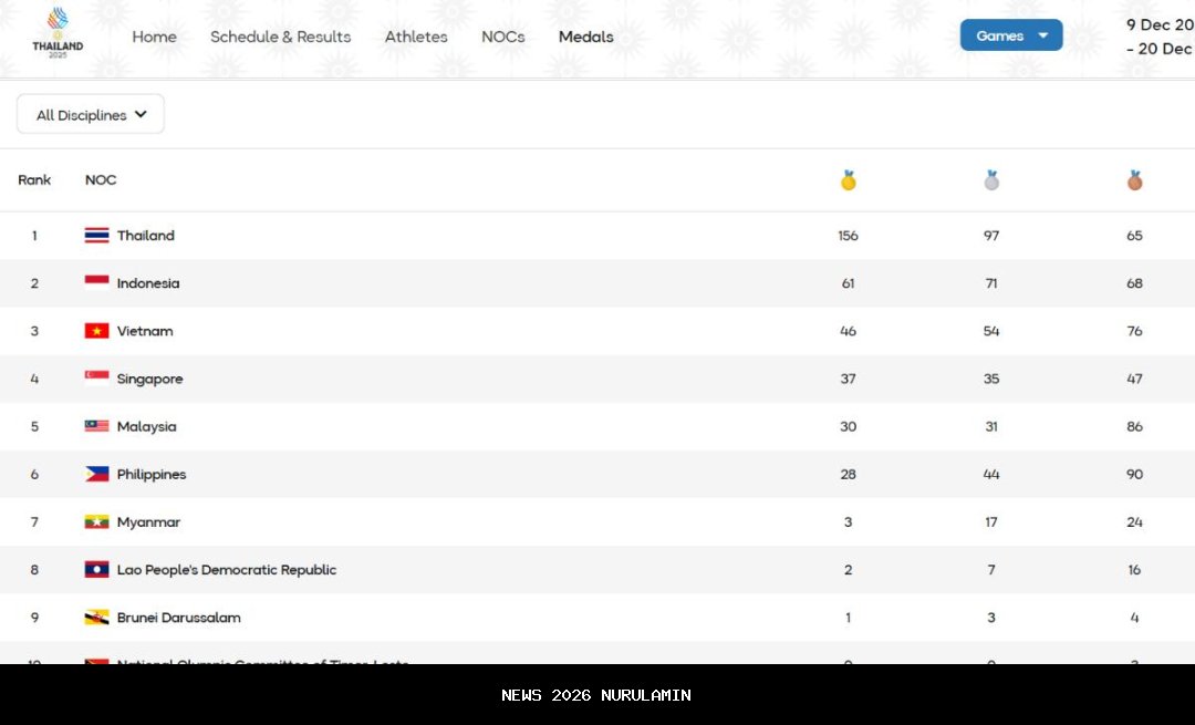 Berikut update perolehan medali SEA Games 2025 hingga Selasa (16/12/2025) pukul 20.38 WIB: