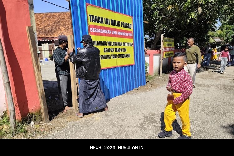 Ia juga memasang penutup berbahan material seng berwarna biru lengkap dengan tulisan 'Tanah ini milik pribadi berdasarkan SHM nomor :09/1986. Dilarang melakukan aktivitas apa pun tanpa izin pemilik atau yang menguasai'.