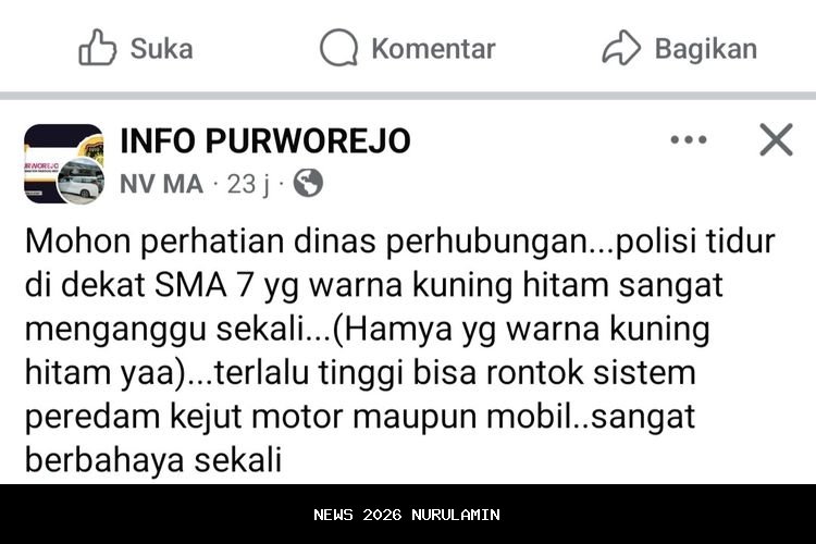 Meski memahami alasan keselamatan, sejumlah warga tetap meminta Dishub Kabupaten Purworejo untuk mengevaluasi ketinggian polisi tidur tersebut. Mereka khawatir jika tidak segera disesuaikan, keberadaannya justru dapat menimbulkan kecelakaan baru.