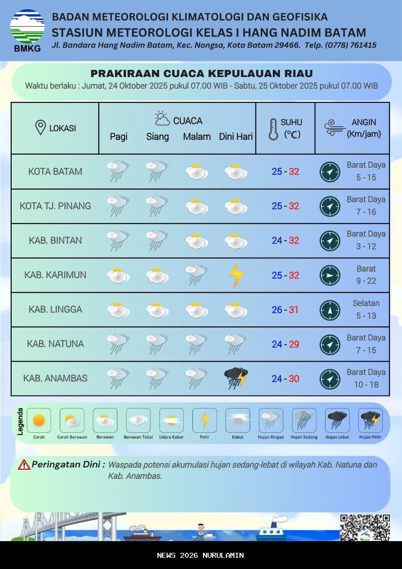 Prakiraan Cuaca di Kepulauan Riau Hari Jumat 24 Oktober 2025