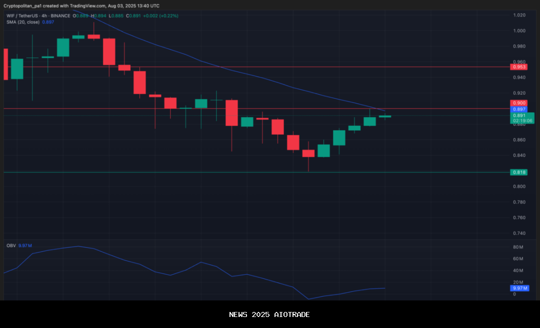 Pada timeframe 4 jam, WIF sedang berusaha membentuk dasar antara $0,81-$0,90 setelah penurunan besar, dengan tindakan harga terbaru menunjukkan tanda-tanda konsolidasi daripada penurunan terus-menerus yang menggambarkan minggu-minggu sebelumnya. Indikator On-Balance Volume menunjukkan beberapa stabilisasi dalam tekanan penjualan, meskipun masih berada pada tingkat yang mengkhawatirkan.