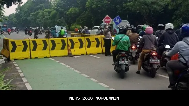 Dampak: Penyempitan jalan menjadi satu lajur