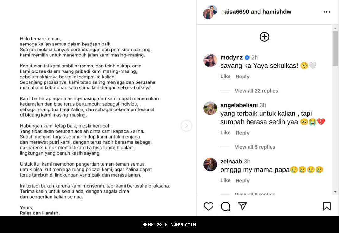 Sepanjang prosesnya, kami tetap saling menjaga dan berusaha memahami kebutuhan satu sama lain dengan sebaik-baiknya, ujar Raisa dalam unggahan yang viral beberapa hari lalu.