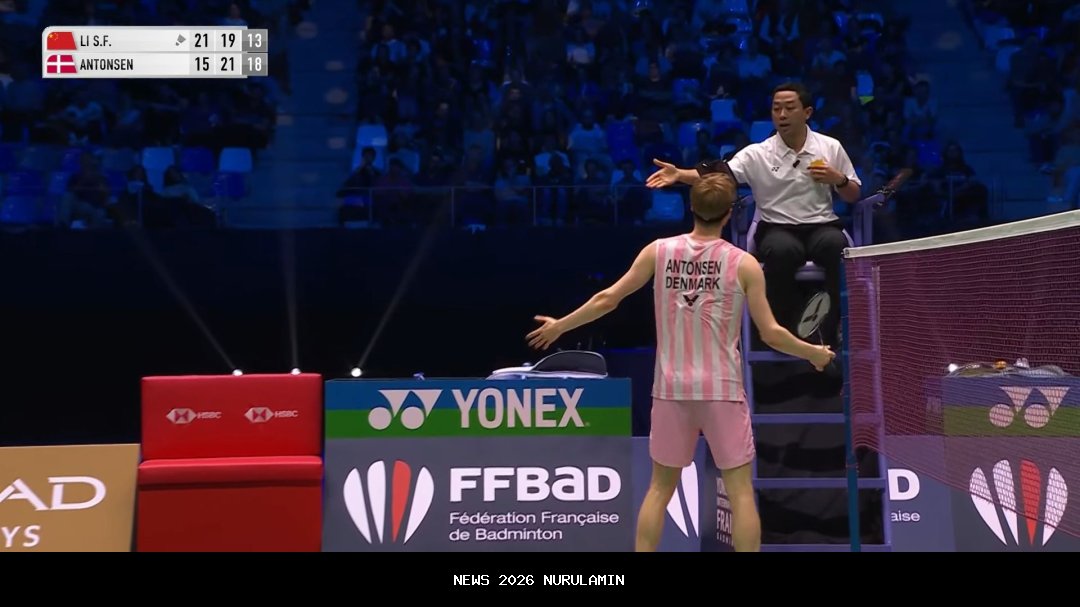Antonsen kemudian melanjutkan aksi tantrumnya dengan mengeluh lapangan yang basah. Penonton sampai mencemoohnya. Jaohari akhirnya memberikan kartu kuning setelah instruksinya tidak diindahkan. "Ya, kepemimpinan yang bagus dari umpire," puji komentator resmi BWF, Gillian Clarks.