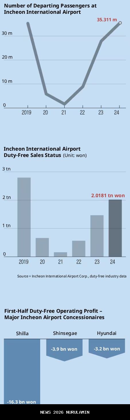Tiga operator tersebut tidak mencatatkan laba operasional pada semester pertama tahun 2025, dengan Shilla dan Shinsegae—keduanya sedang meminta pengurangan sewa yang diwajibkan pengadilan—masuk ke dalam kerugian. Seorang pejabat dari industri bebas bea mengatakan bahwa kontrak Incheon sedang mengalami kerugian sekitar 5 miliar won ($3,6 juta) per bulan. Sekarang, wisatawan Tiongkok yang dulu menjadi kelompok pelanggan utama, beralih ke belanja dengan harga lebih rendah di toko-toko seperti Olive Young dan Daiso, sementara banyak wisatawan Korea Selatan memilih pembelian bebas bea online atau perjalanan belanja ke negara-negara seperti Jepang, di mana tingkat tukar mata uang lebih menguntungkan.