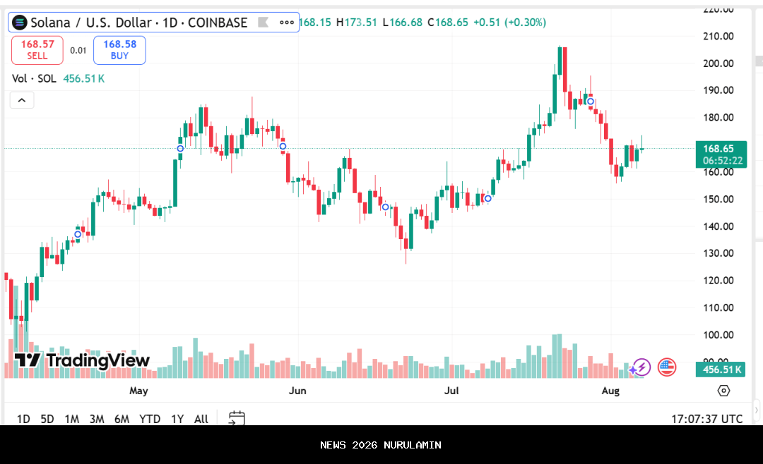 Harga terbaru Cardano relatif stabil di $0.7595, dengan kenaikan 3,54%, dan Solana kini berada di $170,25, dengan kenaikan yang moderat sebesar 1,36%.