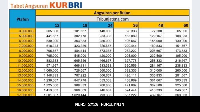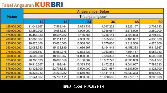 Tabel Angsuran KUR BRI 2025