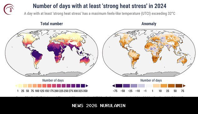 Secara keseluruhan pada tahun 2024, rata-rata global jumlah hari dengan kelembapan tinggi mencapai rekor sebanyak 35,6 hari lebih banyak dari biasanya.