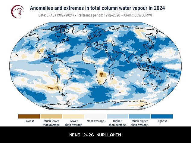Laporan 'State of the Climate' terbaru yang diterbitkan oleh Bulletin of the American Meteorological Society (BAMS) menemukan bahwa 2024 mencatat rekor baru untuk tingkat uap air di atmosfer dan jumlah hari lembap.