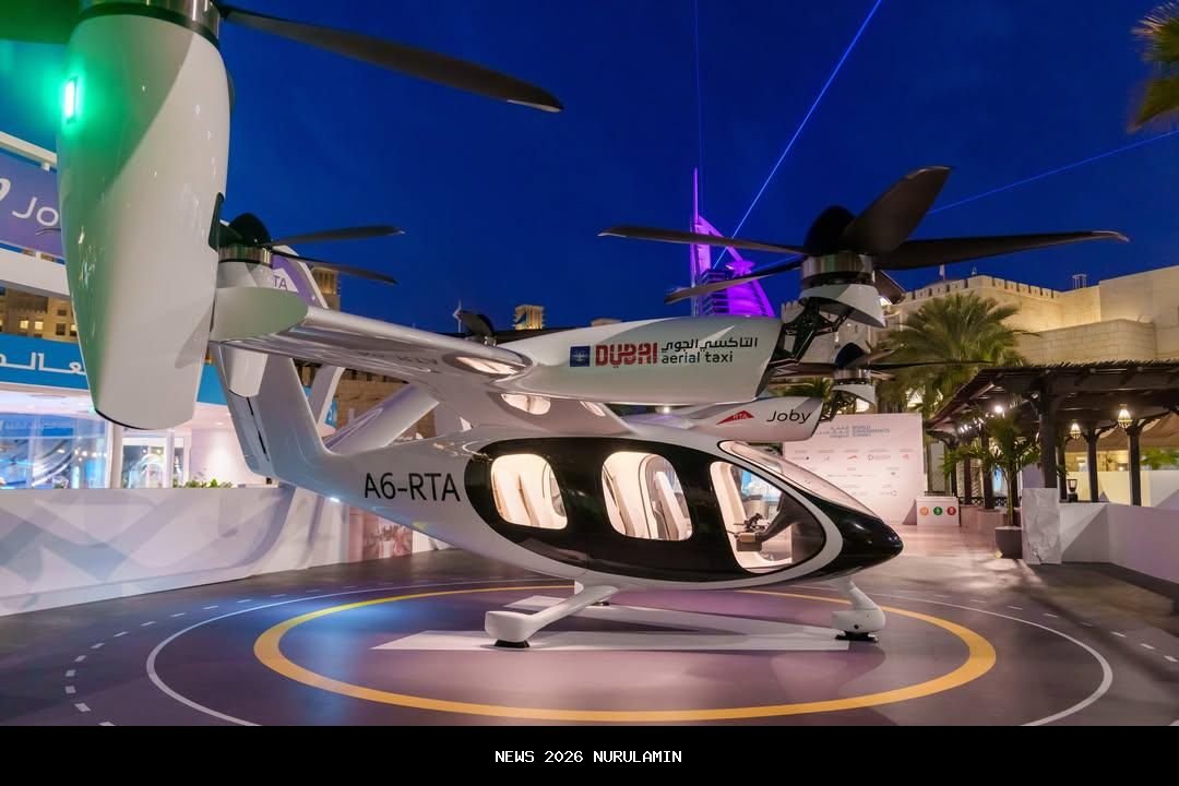 Taksi terbang atau taksi udara listrik yang dibuat oleh perusahaan Amerika Serikat (AS), Joby Aviation, akan memulai operasi komersial di Dubai pada akhir 2026. Hal ini diumumkan oleh Ketua Otoritas Jalan dan Transportasi (RTA) Dubai, Mattar Al Tayer, pada Jumat (16/1/2026). Rencana ini menjadi langkah besar dalam pengembangan transportasi udara perkotaan di Uni Emirat Arab, dengan tujuan menjadikan Dubai sebagai salah satu kota pertama di dunia yang mengoperasikan layanan taksi udara listrik secara reguler.