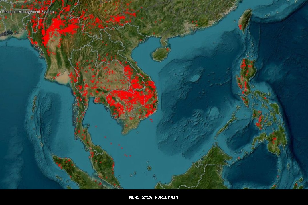 Saat berita ini ditulis, Rabu (25/3), citra satelit 24 jam terakhir menunjukkan bahwa titik panas telah menyebar di sebagian besar wilayah Vietnam, Kamboja, dan Myanmar. Di Indonesia, titik panas banyak tercatat di Pulau Sumatra, sementara di Malaysia dan Filipina juga terdapat daerah dengan aktivitas panas yang signifikan.