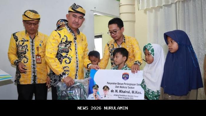 Wali Kota Tarakan, dr H Khairul M Kes, secara simbolis menyerahkan bantuan peralatan sekolah kepada peserta didik di SMPN 1 Tarakan, Kalimantan Utara, pada hari Kamis (6/11/2025). Penyerahan bantuan ini dilakukan sebagai bagian dari upaya pemerintah daerah dalam mendukung kualitas pendidikan dan memberikan semangat belajar bagi siswa.