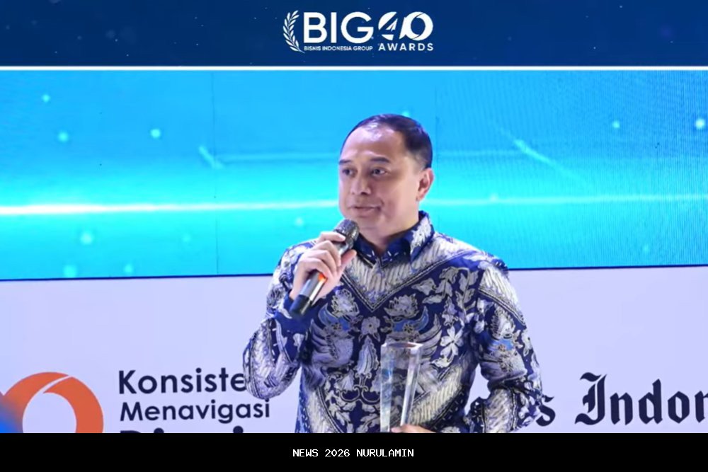 SURABAYA – Wali Kota Surabaya Eri Cahyadi berhasil meraih penghargaan kategori tokoh pembangunan wilayah "Urban Economic Revival and Employment Strategies" dalam Bisnis Indonesia Group BIG 40 Awards di Hotel Raffles, Jakarta, pada Senin (8/12/2025) malam.