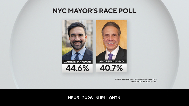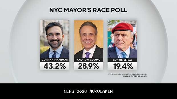 Sebuah survei terbaru yang dilakukan oleh AARP dan Gotham Polling menunjukkan bahwa kandidat Partai Demokrat, Zohran Mamdani, masih mempertahankan keunggulannya dengan 43,2%. Kandidat independen, Andrew Cuomo, berada di posisi kedua dengan 28,9%, sedangkan kandidat Partai Republik, Curtis Sliwa, berada di posisi ketiga dengan 19,4%.